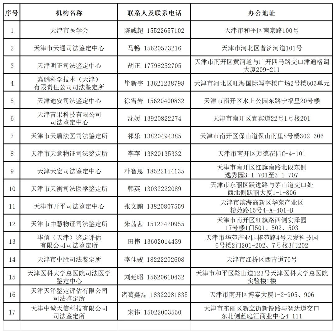 2024年天津法院建設(shè)工程造價(jià)、建設(shè)工程質(zhì)量、資產(chǎn)評(píng)估、會(huì)計(jì)審計(jì)、醫(yī)療損害鑒定評(píng)估機(jī)構(gòu)名錄