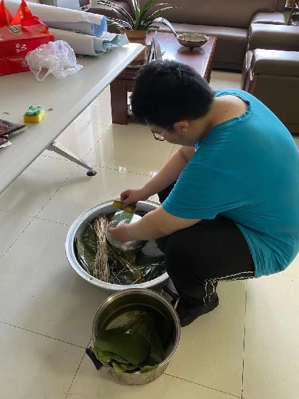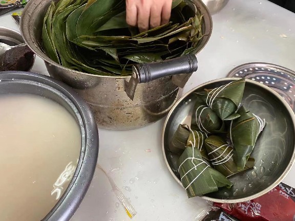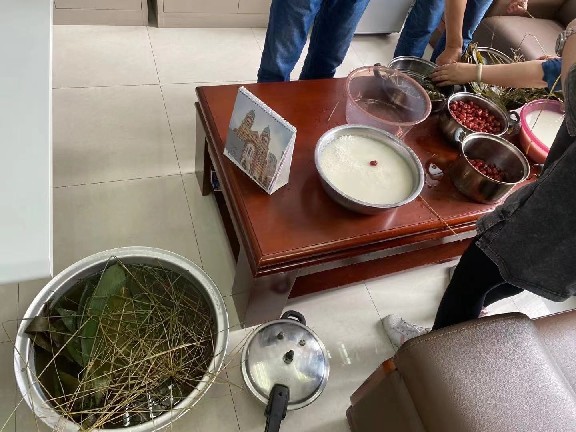 2021年6月11日早晨,許多員工就開始忙碌起來,從家里帶來電磁爐、煮鍋等炊具;事前泡好相應(yīng)數(shù)量的糯米、準備好餡的配料及包扎的柴繩、粽葉,比賽結(jié)束后幫助煮熟粽子。